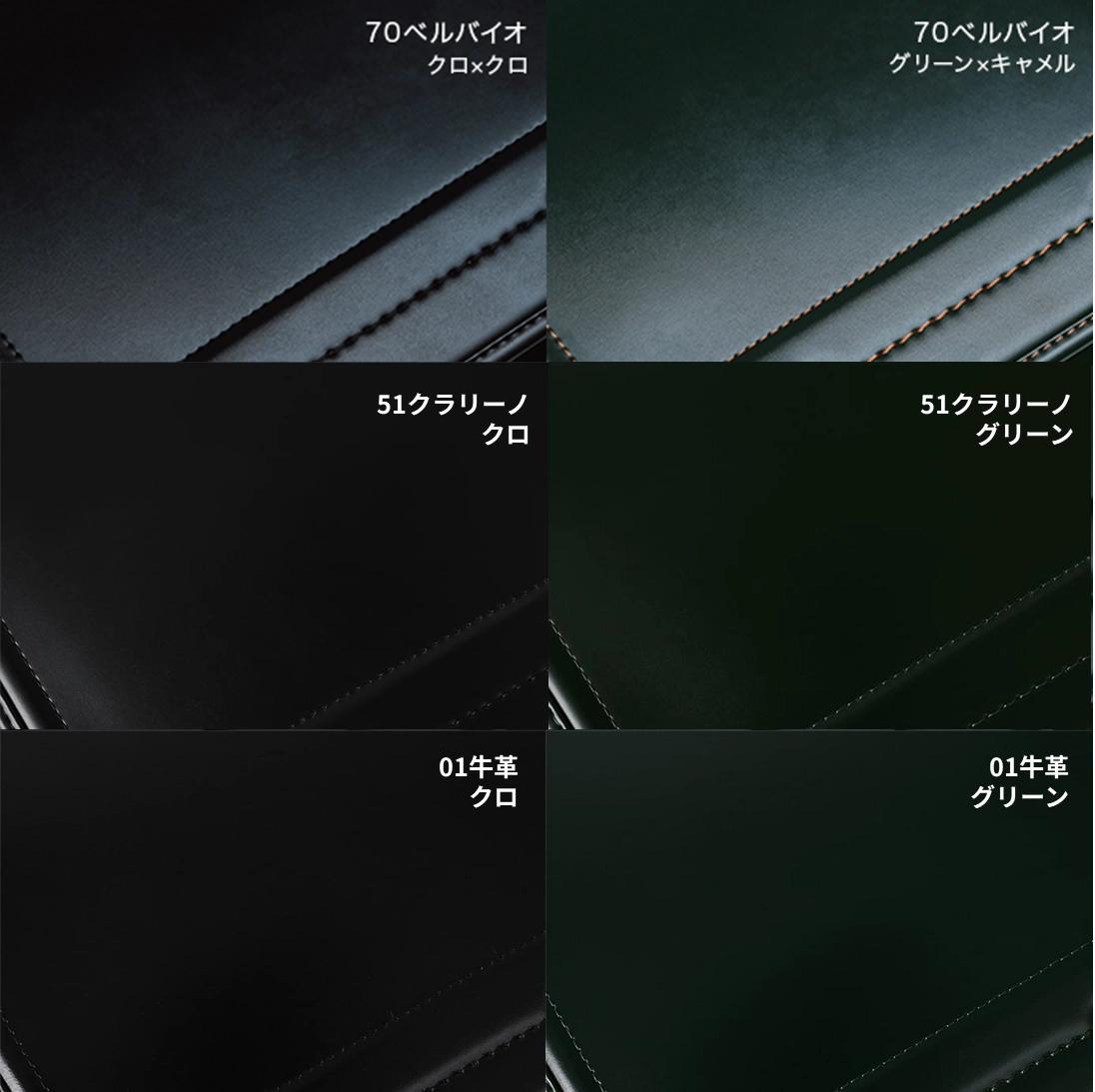 ぱっと見では同じように見える色でも、実際に並べて比べてみると、濃さや色味のわずかな違いで印象は大きく変わります。ここでは、同じ素材の中で似た色同士を並べて、どんなふうに見え方が変わるのかを比べられるよう、いくつかの組み合わせパターンをご用意しました。