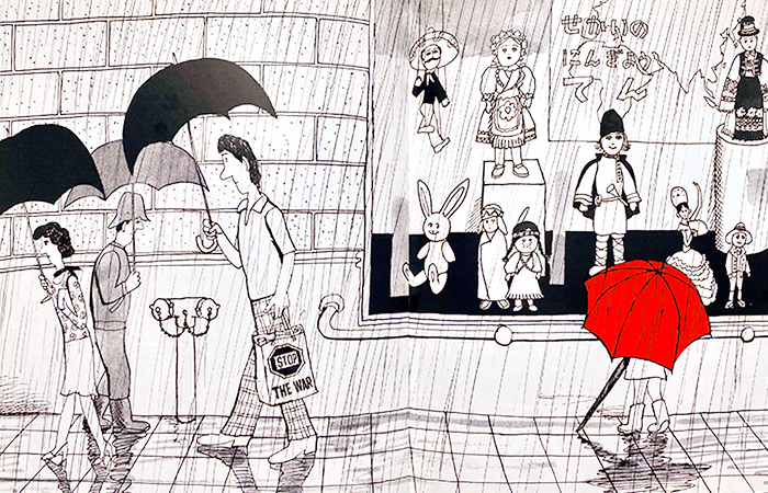 何でもない雨の日の出来事を黒一色の世界と女の子の赤いかさだけで描いた文字なし絵本の名作。主人公は大きな黒いかさを持って駅までお父さんを迎えに行く女の子。