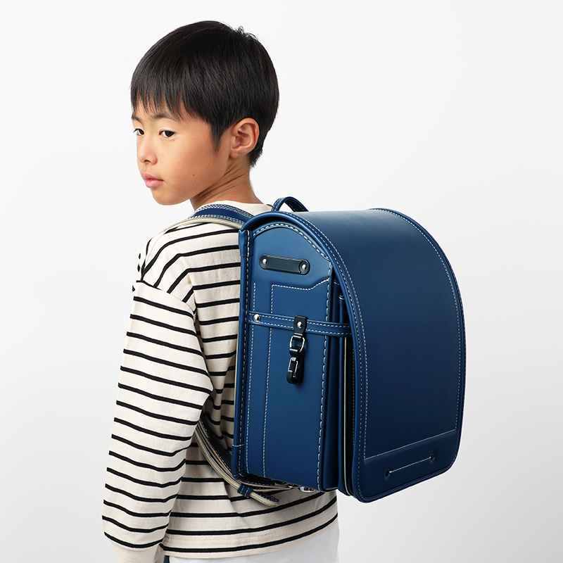 牛革のような高級感がありつつ、人工皮革なので軽く、扱いやすいのが魅力です。本体とはちがう色のステッチを取り入れることで、シンプルながらもお子さまらしさを表現できるデザインになっています。