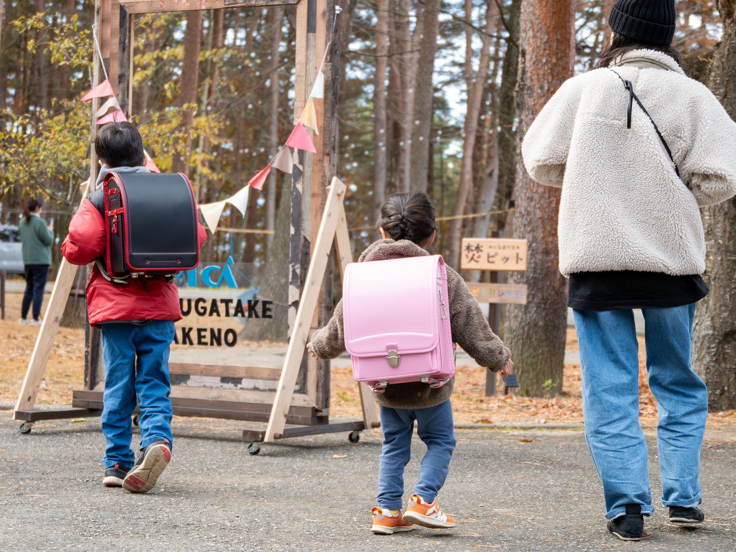滞在中はずっとお気に入りのランドセルと一緒だから、ランドセルを背負ってお父さん、お母さんとキャンプ場を楽しくおさんぽしたり、もちろん、眠るときだって好きなランドセルと一緒に過ごせます。